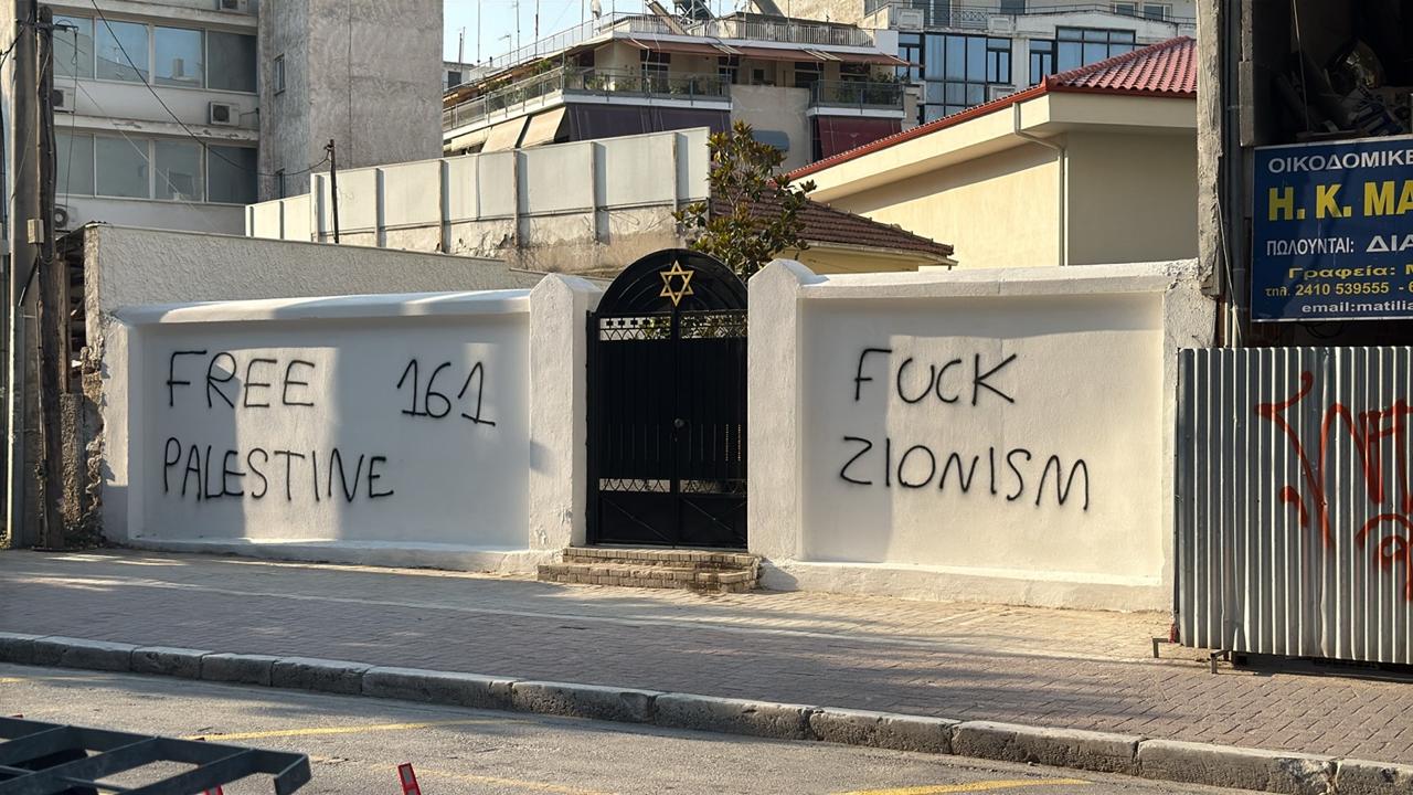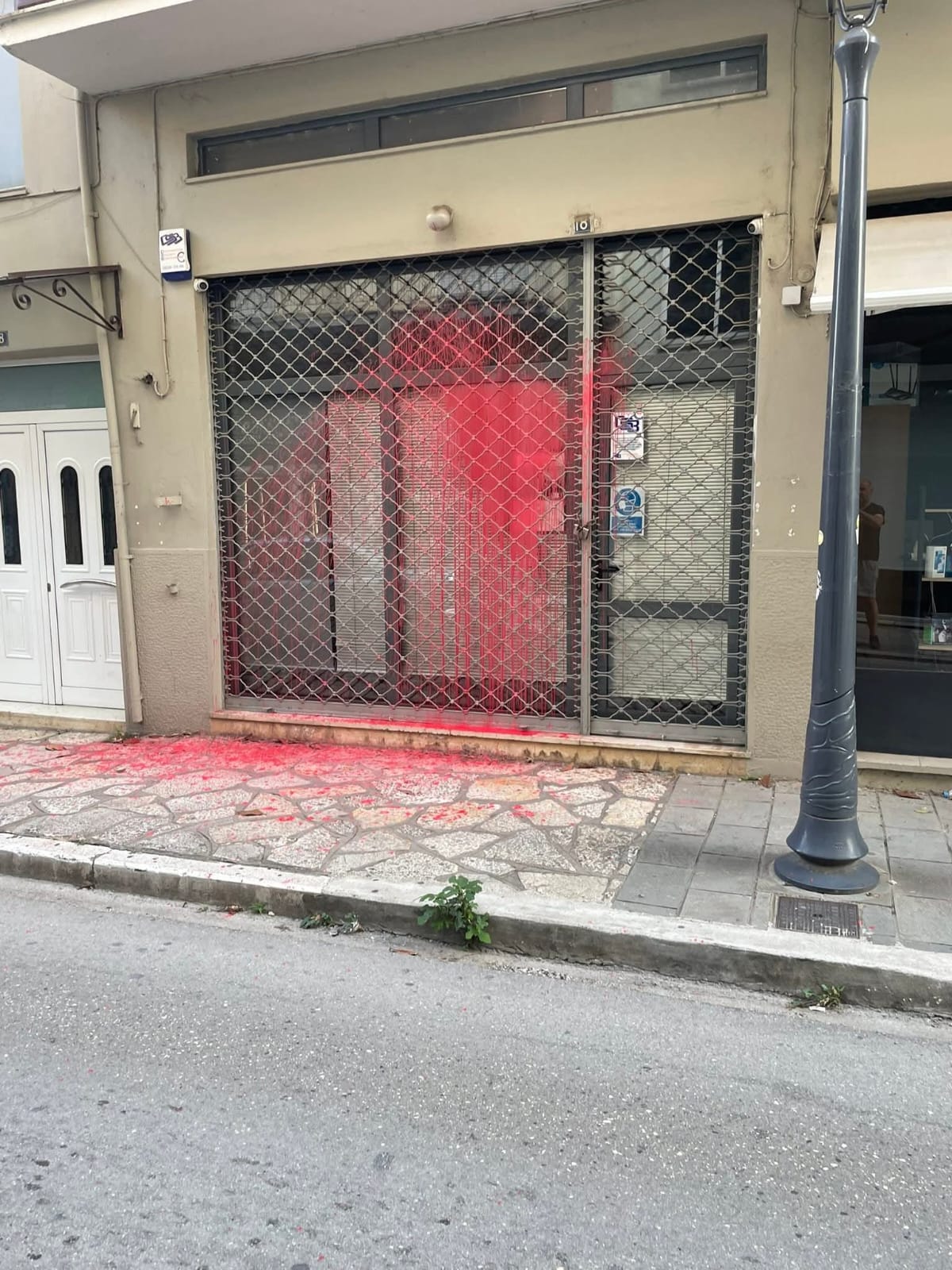 ❗ Βανδαλισμός των γραφείων της Ισραηλιτικής Κοινότητας Ιωαννίνων στην οδό Γιοσέφ Ελιγιά με κόκκινη μπογιά σήμερα 22/6/2025 το απόγευμα. Τη στιγμή της επίθεσης πέρασε από το σημείο αυτό πορεία του ΚΚΕ, σύμφωνα με δημοσίευση της Ομάδας Φίλων της Κοινότητας στο FB.